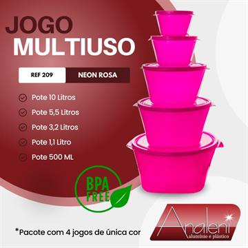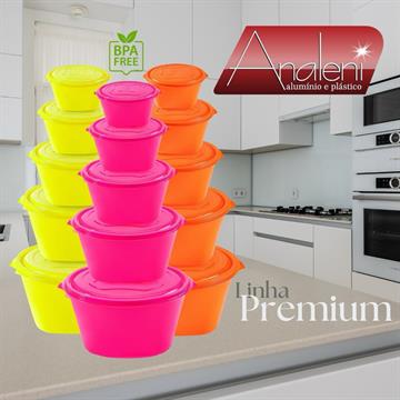 Bonitos e práticos, kit composto por 5 potes com tampa. Fabricados em polipropileno, possuem alta vedação e são fáceis de abrir e fechar. Além disso conservam os alimentos por muito mais tempo.
